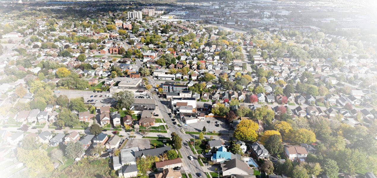 Image: Aerial view of Facer StreetThe City of St. Catharines is studying how to renew Facer Street from Niagara Street to Grantham Avenue. DTAH and R.V. Anderson are leading the work, looking at how this street can become safer, greener, more comfortable to walk, and a stronger place for the neighbourhood.
