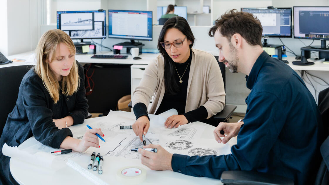 Collaboratively. We believe that the most successful projects are a result of open, honest and continuous dialogue between all parties involved – our client, design team, consultants, other stakeholders, and the community at large. Within the studio, collaboration between senior and junior staff encourages design innovation while providing great mentorship to the young and talented studio team.