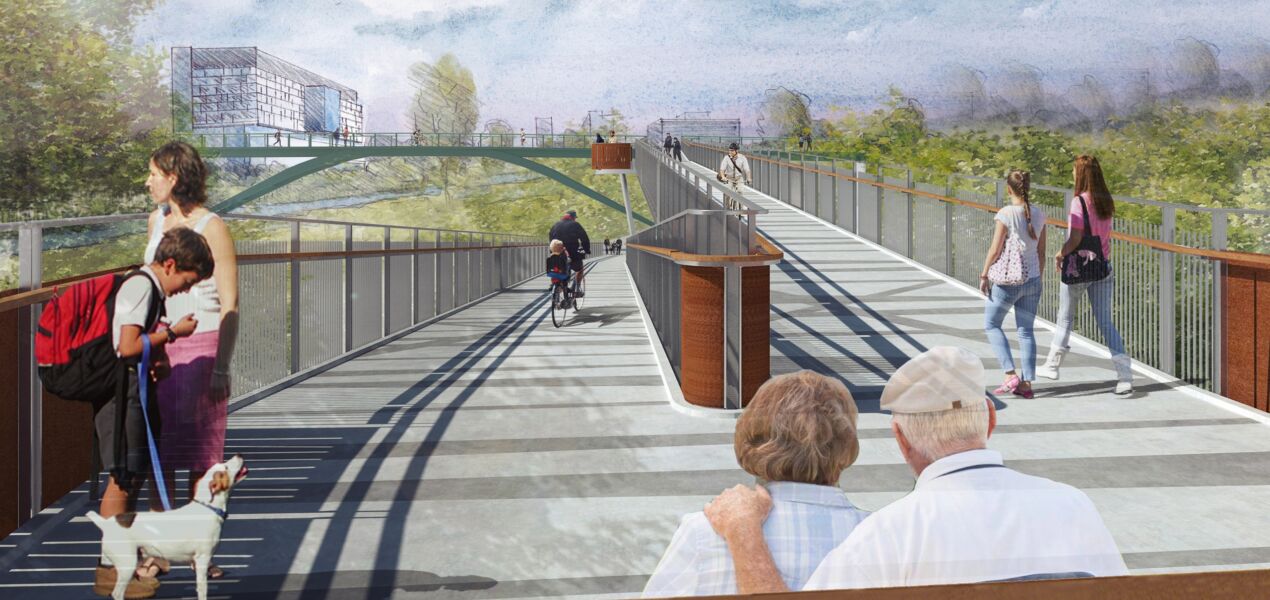 Image: Concept Design of the new Lower Don Trail Accessible Ramp (DTAH)The concept design for the Lower Don Trail Accessible Ramp was revealed at a stakeholder meeting on July 19, 2018 at Riverdale Public Library. The new ramp will provide safer and easier access to the Lower Don Trail from the Riverdale Pedestrian Bridge, extending off the north side of the bridge with a switch-back down to the trail, while also creating a destination for new views of the ravine.