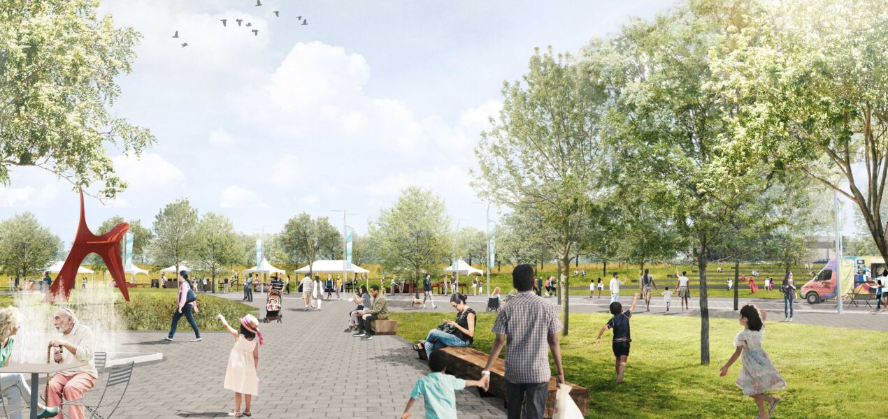 Image: Rendering of Rosalea Plaza, Brampton RiverwalkDTAH is pleased to announce that the Brampton Riverwalk Urban Design and Open Space Master Plan (UDMP) was recently approved by Brampton City Council. The Riverwalk Master Plan aims to integrate an engineered long-term solution to eliminate the flood risk in downtown Brampton, while unlocking the economic potential of the area, and improving and enhancing ecological spaces within the public realm. When implemented, the project will result in a renewed physical and social relationship to the Etobicoke Creek through the creation of a series of connected open spaces, dynamic public areas and dramatic landscapes.